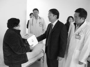 ↑中心醫(yī)院領(lǐng)導(dǎo)看望病友。