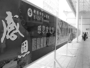 ↑醫(yī)患感恩文化長廊向人們講述著一個個感人的故事。