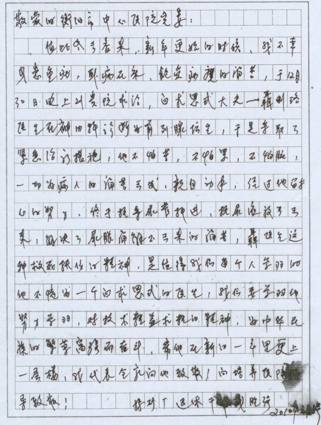 一位退休老干部的感謝信