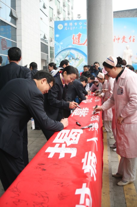 揭幕儀式上,近千名醫(yī)務(wù)人員肅立宣誓并鄭重簽名承諾:“對技術(shù)精益求精,對病人滿腔熱情,對工作極端負責(zé)。”