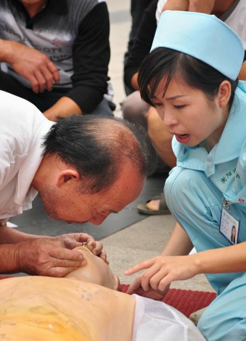 市中心醫(yī)院舉行“世界急救日”宣教活動(dòng) 發(fā)布時(shí)間:2010年9月14日 預(yù)覽:3473次 市中心醫(yī)院舉行“世界急救日”宣教活動(dòng) 9月11日是“世界急救日”。為提高公眾的自救互救意識,讓更多的人士掌握急救技巧,在突發(fā)事件現(xiàn)場挽救生命和降低傷害程度。衡陽市中心醫(yī)院在這一天開展了“知識守護(hù)生命,急救在我身邊”主題宣教活動(dòng),他們組織醫(yī)務(wù)人員在人流匯集區(qū)域教導(dǎo)廣大市民掌握急救技能、發(fā)放《日常急救知識宣傳手冊》并提供現(xiàn)場救護(hù)知識咨詢。圖為該院急診科一名護(hù)士正在向市民傳授正確的人工呼吸方法。(澗峻)