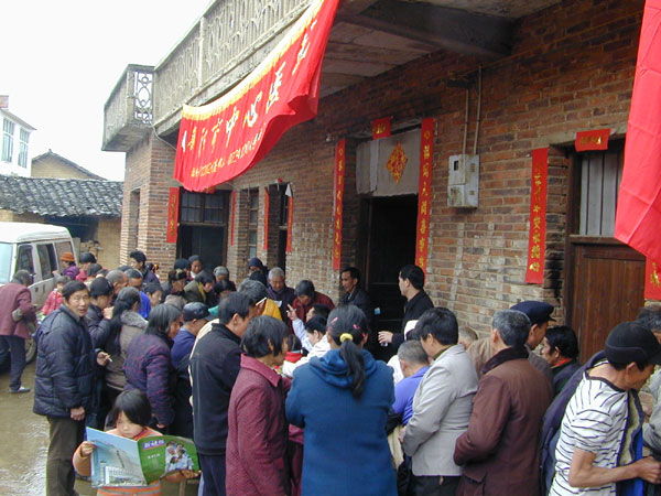 3月18日,從凌晨中雨就下過不停,早上7:40從市區(qū)出發(fā),義診隊踏上了去祁東縣金橋鎮(zhèn)的泥濘道路,萬物復(fù)蘇,春色滿園,一路油菜花、桃花、李子花,車內(nèi)望去心曠神怡,上午9時多到達 ,該鎮(zhèn)鄰近的楠木、官山、長嶺、司峰、曾家、宮下、許家、豐仁8個村的村民聞訊后冒雨聚集在鎮(zhèn)衛(wèi)生院內(nèi),看著村民期盼的眼神,醫(yī)務(wù)人員趕到后顧不上下車后淋濕的臉蛋和衣服立即分成兩組,一組看病,一組發(fā)藥,使前來看病的村民很受感動,有的村民說:“市委組織的大走訪,為村民送醫(yī)送藥送健康,我們感受到了黨的關(guān)懷”。市委組織部的蔣副部長一行幾人隨后也趕到了這里,并進行了慰問。