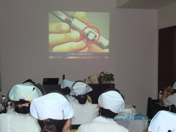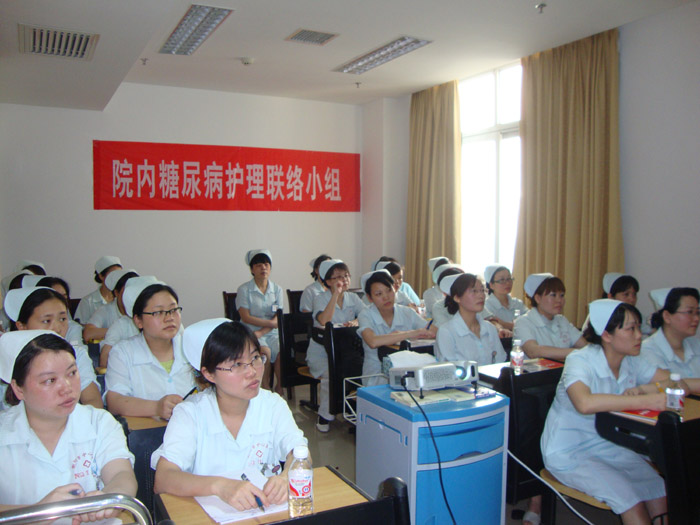我院糖尿病??谱o理組舉行第一次糖尿病知識培訓(xùn) 發(fā)布時間:2011年6月3日 預(yù)覽:4359次 我院糖尿病??谱o理組舉行第一次糖尿病知識培訓(xùn) 隨著人們生活水平的提高,糖尿病發(fā)病率日益增長,文獻報告,約有10%的住院病人合并有糖尿病。為使在其他專科住院的糖尿病患者得到糖尿病??普疹?,避免不正確的誤治或錯誤的指導(dǎo),減少糖尿病患者過早地發(fā)生并發(fā)癥,我院于5月成立了26名聯(lián)絡(luò)護士組成的糖尿病專科護理小組,小組由各臨床科室選拔1名優(yōu)秀護士組成,糖尿病小組定期對所有聯(lián)絡(luò)員進行培訓(xùn)考核,各聯(lián)絡(luò)員接受培訓(xùn)后在自已所在病區(qū)指導(dǎo)解決本病區(qū)護士不能解決的糖尿病護理問題,起到以點帶面作用,如果聯(lián)絡(luò)員解決不了的問題直接向糖尿病強化治療中心提出會診申請。糖尿病??谱o理小組的成立,是護理部遵循“以病人為中心,以質(zhì)量為核心”準(zhǔn)則的又一體現(xiàn),進一步提高了護理服務(wù)內(nèi)涵質(zhì)量。 5月27日下午,糖尿病??谱o理小組舉行了第一次的糖尿病知識培訓(xùn)。培訓(xùn)內(nèi)容為“胰島素的治療與諾和筆3、4注射技巧”,由我院糖尿病??谱o士的劉丹主講。劉丹為聯(lián)絡(luò)護士們介紹了胰島素的一般知識、胰島素治療的常見認(rèn)識誤區(qū)、胰島素治療的適應(yīng)癥、不良反應(yīng)、胰島素治療的種類以及的諾和筆3、4注射知識并配合視頻演示。理論與操作實踐相結(jié)合,使大家對胰島素有了更進一步的認(rèn)識,對諾和筆3、4的使用及注射更加熟練。課后,大家就臨床工作中遇到的疑問進行熱烈地討論,許多人對這種糖尿病知識培訓(xùn)深感興趣,認(rèn)為參加糖尿病知識培訓(xùn),彌補了非專科護理人員的糖尿病知識局限,在日常護理中能更好地開展工作,提高了護理質(zhì)量,真正讓患者受益。 護理部 2011-5-31