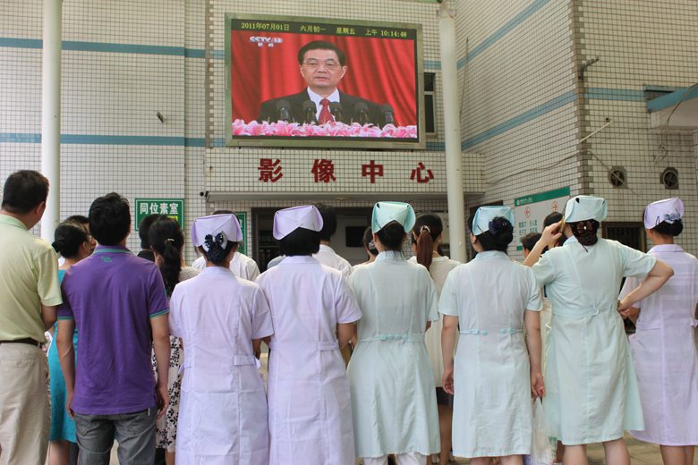 衡陽市中心醫(yī)院組織收看建黨90周年慶祝大會電視直播 發(fā)布時間:2011年7月2日 預(yù)覽:3245次 衡陽市中心醫(yī)院組織收看建黨90周年慶祝大會電視直播 7月1日,衡陽市中心醫(yī)院組織全院醫(yī)務(wù)人員收看了建黨90周年慶祝大會電視直播。該院醫(yī)務(wù)人員通過認真學習胡錦濤總書記在大會上的重要講話后,對建黨歷程和黨的偉業(yè)有了更加深刻的認識,備受鼓舞,倍感振奮。他們紛紛表示要更好地適應(yīng)新形勢、新任務(wù)的要求,時刻牢記黨的宗旨,積極發(fā)揚黨的優(yōu)良傳統(tǒng)和加強黨的先進性建設(shè),堅定信念,勇扛責任,立足本職崗位,堅持患者至上,緊密結(jié)合創(chuàng)先爭優(yōu)活動和“三好一滿意”活動,為推進全市醫(yī)療衛(wèi)生事業(yè)發(fā)展和打造湘南區(qū)域性醫(yī)療中心執(zhí)著追求。(鄒建軍)