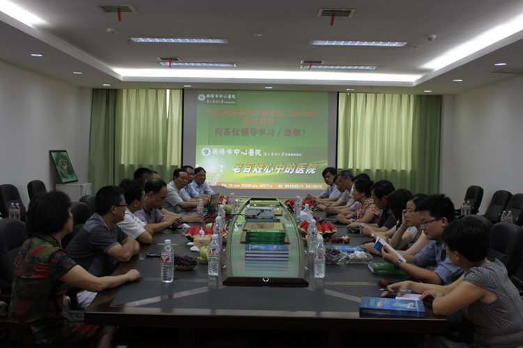 益陽市政府組團(tuán)來我院考察 發(fā)布時(shí)間:2011年7月22日 預(yù)覽:4377次 益陽市政府組團(tuán)來我院考察 7月22日,益陽市政府副秘書長張慧、市衛(wèi)生局局長黃平率領(lǐng)益陽市衛(wèi)生系統(tǒng)有關(guān)領(lǐng)導(dǎo)一行14人來我院考察,衡陽市政府副秘書長劉達(dá)祥、市衛(wèi)生局局長趙安民陪同考察??疾爝^程中,益陽市考察團(tuán)聽取了我院近幾年建設(shè)和發(fā)展有關(guān)情況的PPT演示報(bào)告,雙方就落實(shí)十項(xiàng)便民措施、開展“三好一滿意”活動(dòng)和抓好抗菌藥物專項(xiàng)整治行動(dòng)等方面進(jìn)行了廣泛交流,隨后,考察團(tuán)還參觀了我院心內(nèi)科中心和門診部。
