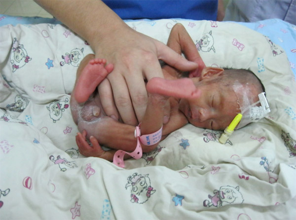 胎齡只有6個月、出生時體重不足1000克、身體比成年人手掌大不了多少的河北籍“巴掌嬰兒”,經(jīng)過衡陽市中心醫(yī)院醫(yī)護(hù)人員為期一個月的精心救治,奇跡般地活了下來。12月1日,該院兒科專家在對該嬰兒進(jìn)行出院隨訪時,嬰兒家長反映“發(fā)育良好”。