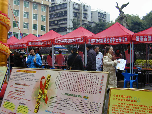 遏制艾滋,呵護(hù)生命 發(fā)布時(shí)間:2011年12月2日 預(yù)覽:2879次 遏制艾滋 呵護(hù)生命 2011年12月1日,第二十四個“世界艾滋病日”,衡陽市衛(wèi)生局組織了衡陽市紅十字會、市區(qū)疾控中心、市中心醫(yī)院等12家醫(yī)療單位冒著陰雨寒冷的天氣在雁峰公園旁舉行了大型的宣傳活動,制作了16塊圖文并茂易懂耐看的宣傳版,發(fā)放了艾滋病防治健康教育“五個一工程”供大眾閱讀的8種資料近1萬份,還發(fā)放了藥物和安全套,義診咨詢3000余人次。同時(shí)市區(qū)各大醫(yī)院在門診也開展相關(guān)的宣傳活動。 圖/文:衡陽市中心醫(yī)院門診辦張永明