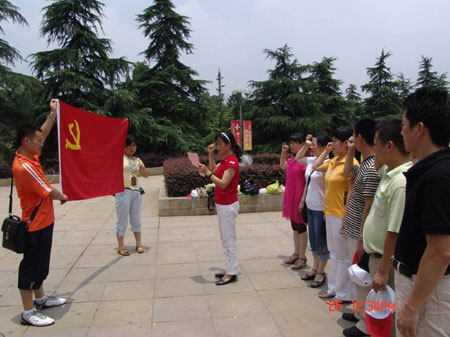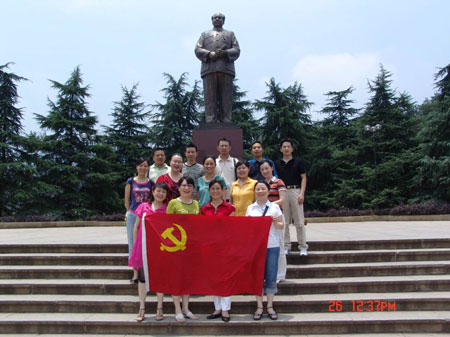 黨員歡聚韶山 發(fā)布時(shí)間:2004年6月28日 預(yù)覽:10381次 黨員活動(dòng) 中國(guó)共產(chǎn)黨誕辰87周年前夕,醫(yī)院黨委于6月26日組織8名新黨員和部分優(yōu)秀黨員赴韶山參觀學(xué)習(xí),并在毛澤東銅像廣場(chǎng)莊嚴(yán)宣誓。圖為黨員宣誓和參觀學(xué)習(xí)照片。 院辦:冷曉君