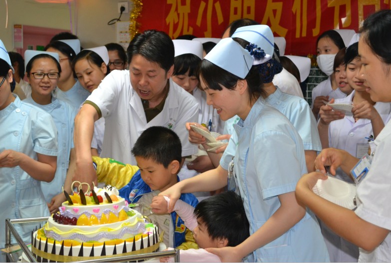 六一,歡樂(lè)的兒科病房 發(fā)布時(shí)間:2013年6月6日 預(yù)覽:3117次 “親愛(ài)的小朋友們,今天是一年一度的六一兒童節(jié),首先請(qǐng)?jiān)试S我代表衡陽(yáng)市中心醫(yī)院、兒科全體醫(yī)務(wù)人員向小朋友們致以節(jié)日的祝賀,祝大家節(jié)日快樂(lè),健康成長(zhǎng)!”6月1日早上七點(diǎn)四十分許,窗外陽(yáng)光明媚,我院婦兒中心兒科病房彩球高掛,彩帶飛揚(yáng),大家在護(hù)士站前隆重集會(huì),共同慶祝第64個(gè)國(guó)際兒童節(jié)。祝平照主任接著說(shuō)道:“我們兒科去年八月從院本部搬遷至華新婦兒中心,是我院‘大專(zhuān)科,小綜合’的試點(diǎn)窗口,硬件設(shè)施和就醫(yī)環(huán)境的顯著改善給病人帶來(lái)實(shí)惠,也將激勵(lì)我們每一位醫(yī)務(wù)人員開(kāi)拓創(chuàng)新,建設(shè)好新形勢(shì)下的‘兒童醫(yī)學(xué)中心’,以獨(dú)特的品牌和區(qū)位優(yōu)勢(shì)輻射周邊群眾。我們將一如既往秉承‘醫(yī)者父母心’的優(yōu)良傳統(tǒng),努力提高醫(yī)療服務(wù)水平,為更多家庭送去健康,重建歡樂(lè)?!?BR> 熱烈的掌聲過(guò)后,祝平照主任邀請(qǐng)兩位小患者為大家分切蛋糕,并親手分發(fā)到每一個(gè)孩子的手中。一位患兒家屬感激地說(shuō)道:“祝主任,感謝你們,你們有心了。你們不僅是治病救人的好醫(yī)生還給我孫子過(guò)節(jié),我代表我們?nèi)腋兄x你們,謝謝啦!”樸素的話(huà)語(yǔ)回蕩在這個(gè)情景交融的溫馨場(chǎng)面里,化作一股動(dòng)力,激勵(lì)著每一個(gè)醫(yī)務(wù)人員。另外,為了確保當(dāng)日活動(dòng)的順利進(jìn)行,不影響正常醫(yī)療工作地開(kāi)展,在張小佛主任和羅淑君護(hù)士長(zhǎng)的率領(lǐng)下,全體醫(yī)護(hù)人員主動(dòng)提前到崗,并借由查房之機(jī)把深切關(guān)懷和慰問(wèn)連同節(jié)日禮物一并送到了小朋友們的床頭。 (王 旋)
