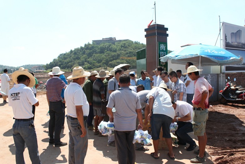 我院對異地?cái)U(kuò)建工程項(xiàng)目施工隊(duì)伍進(jìn)行慰問 發(fā)布時間:2013年8月2日 預(yù)覽:12095次 我院對異地?cái)U(kuò)建工程項(xiàng)目施工隊(duì)伍進(jìn)行慰問 8月1日上午,我院副院長羅曉波、工會主席蔡春香、副院長唐業(yè)華率醫(yī)務(wù)部、護(hù)理部、藥學(xué)部醫(yī)務(wù)人員到我院異地?cái)U(kuò)建工程項(xiàng)目工地現(xiàn)場對奮戰(zhàn)在炎炎烈日下的施工隊(duì)伍進(jìn)行了慰問,為每一位施工人員贈送了精心準(zhǔn)備的抗暑藥品及涼茶。 我院異地?cái)U(kuò)建工程項(xiàng)目自破土動工以來,施工隊(duì)伍抗酷暑、戰(zhàn)高溫,在持續(xù)高溫的惡劣環(huán)境下取得了一定的成績,已完成了門診部大樓、住院部大樓地下室土方開挖及轉(zhuǎn)運(yùn)工程?,F(xiàn)正全面進(jìn)行住院部大樓樁基施工、辦公及生活用房和臨時道路的建設(shè)。 (李志輝)