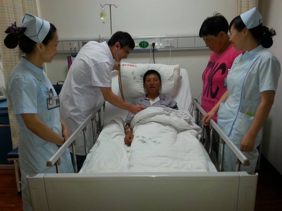 攻關克難,進一步提升二院ICU的救治能力 發(fā)布時間:2013年8月19日 預覽:2868次 近日,二院ICU成功搶救一名重癥中暑合并酒精中毒的危重患者,刷新了此類危重病例救治成功的紀錄,創(chuàng)造了生命的奇跡。 8月12日下午14:20,炎炎烈日,暑氣逼人,二院ICU電話鈴聲突然急促響起:“我是120,馬上準備搶救一名重癥中暑的昏迷病人?!苯拥街甘竞螅A新綜合內(nèi)科主任柏太柱迅速組織成立搶救小組,一邊精心部署,一邊制定急救方案,迅速開通急救通道。隨著一陣 “嗚唔嗚唔……”的警報聲,120送來了一名飲用兩斤白酒后在烈日下勞作數(shù)小時出現(xiàn)燥動不安、四肢抽搐、全身滾燙、嘔吐腹瀉不止、小便失禁、渾身酒氣的昏迷病人。值班醫(yī)生付曉樂給病人做了詳細體檢,護士劉莉健步上前,壓頜托頸,開放氣道,吸痰、吸氧,另一邊護士陳紅梅已熟練地為患者開通了兩條靜脈通道,心電監(jiān)測顯示血壓80/50mmHg,血氧70%,呼吸38次/分,體溫41℃,四肢口角抽搐,情況危急,命懸一線。柏主任立即下達口頭醫(yī)囑:“立即氣管插管,機械通氣,物理降溫,地西泮 10mg 靜脈推注;0.9%氯化鈉250ml/納絡酮4mg靜脈滴入;0.9%氯化鈉100ml/泮托拉唑40mg靜脈滴注?!甭樽砜谱T主任在第一時間,為病人行氣管插管術(shù),由于病人中午大量飲酒劇烈嘔吐口鼻大量嘔吐物,需要不停地行負壓吸引,再加上四肢抽搐,無疑大大增加了插管的難度,譚主任以嫻熟的技術(shù)為患者贏得了寶貴時間。插管后,立即接上呼吸機輔助呼吸,患者的血氧飽和度漸漸上來了,為了迅速降溫,立即冰枕冰敷?;颊咭蛑匕Y中暑在加上大量飲酒導致水樣大便噴射而出,我們不僅要不停地為其吸凈口鼻嘔吐物,而且還要不間斷地為其更換中單,清理大便。搶救有條不紊的進行著…… 經(jīng)過初步救治,體溫下降至39.8℃,患者四肢仍然抽搐,柏主任再次下達醫(yī)囑:“繼續(xù)物理降溫,立即0.9%氯化鈉30ml/咪達唑侖10mg/芬太尼0.3mg靜脈泵入鎮(zhèn)靜?!被颊咚畼哟蟊慵s達3000ml,嘔吐物達1000 ml,補液量已達3000 ml,而患者尿量只有100 ml,醫(yī)囑予深靜脈置管快速補液,靜脈推注速尿40 mg,甘露醇150ml快速靜脈滴入……經(jīng)過一系列緊張而有序的搶救治療,終于出現(xiàn)了可喜的景象:患者在傍晚時分意識逐漸清醒了,體溫也恢復了正常,尿量達到了500 ml,生命體征也平穩(wěn)了??吹讲∪嗣撾x了危險,成功的喜悅不言而喻,我們相視一笑,早已忘記了疲憊,忘記了饑餓…… 第二天,患者神志完全清醒,各項生命體征平穩(wěn),但肝功能嚴重受損。事后了解得知,該患者家境貧寒,為減輕患者負擔,柏主任將其轉(zhuǎn)入綜合內(nèi)科繼續(xù)治療。在綜合內(nèi)科全體醫(yī)務人員的精心治療和護理下,患者在很短的時間內(nèi)康復出院。出院前,患者拉著柏主任的手激動地說:“柏主任,您是我的救命恩人,是您給了我第二次生命。您不僅醫(yī)術(shù)高明,還很為我們這些沒有錢的窮病人著想,太感謝您了!還有你們?nèi)w工作人員……” 這只是我們每天工作的一個縮影。搶救生命、解除痛苦是我們的職責所在?!叭市娜市g(shù)、濟世救人”的仁濟精神已經(jīng)滲透到每一個人的心中,我們沒有豪言壯語,我們只是腳踏實地地做好每一件事。自去年八月份二院ICU成立以來,我們一直秉承“以病人為中心,患者至上”的服務理念,不斷修煉基本功,提高搶救水平,讓病人得到快速的救治,贏得寶貴的生命。迄今為止,我們已經(jīng)成功地救治了如產(chǎn)后大出血、DIC、急性心梗、酒精中毒等200多例急危重癥患者,無一例醫(yī)療事故發(fā)生,取得了良好的社會效益。今后,我們將不斷努力、開拓進取、乘風破浪,為二院的美好明天努力奮斗! (二院急診科 周玲)