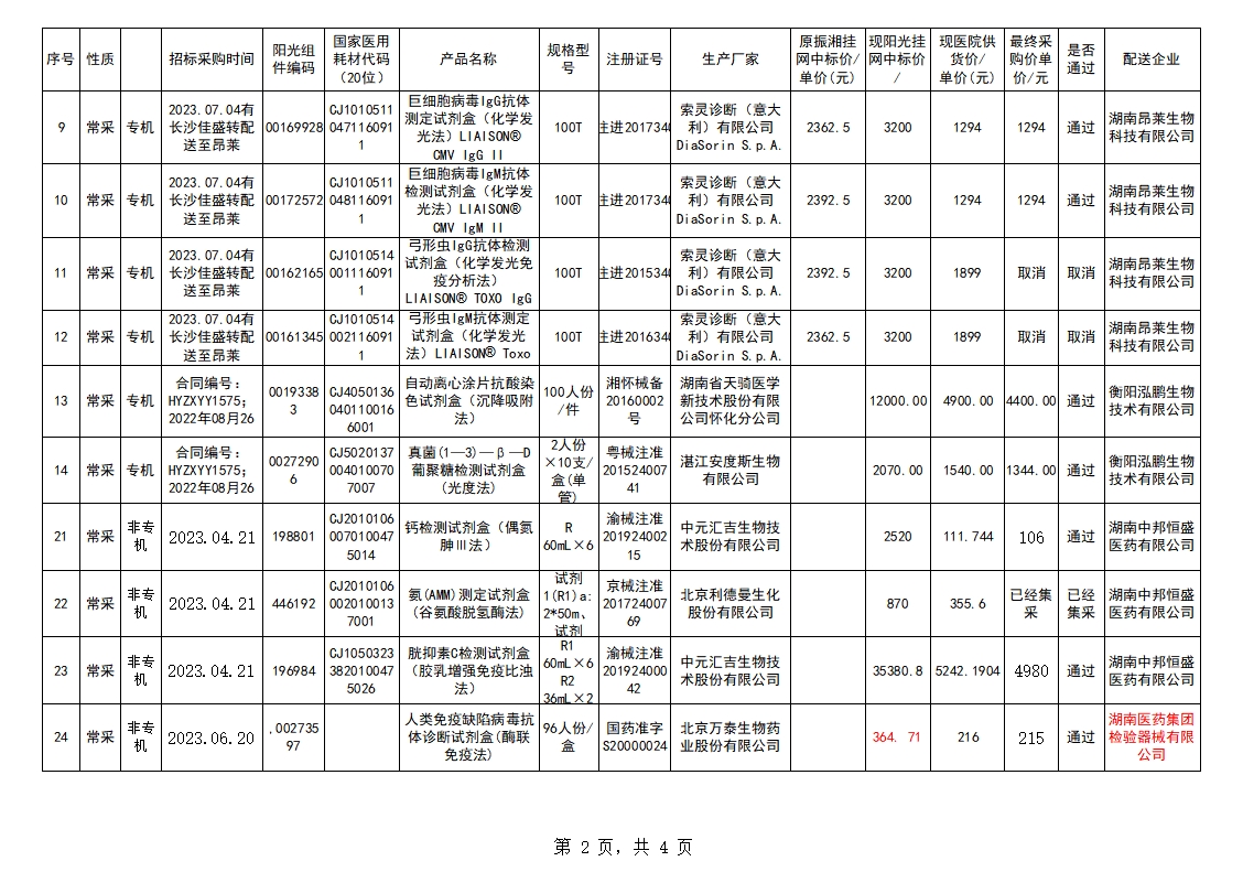 衡陽市中心醫(yī)院部分檢驗項目收費價下調試劑重新議價結果公示(5.31)