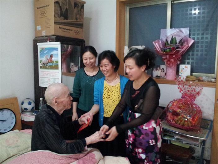 近日,我院工會(huì)主席蔡春香、紀(jì)委書記周素英帶領(lǐng)黨政辦、退休支部負(fù)責(zé)人一行來到退休老職工、百歲老人楊先蝶家中,為他送上生日祝福和慰問。