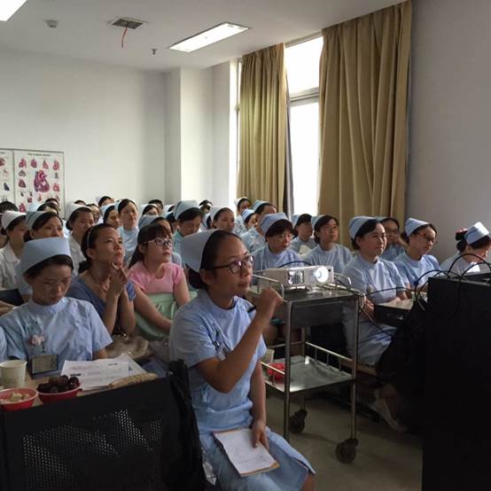 7月24日下午三點,心血管中心舉行了護理教學(xué)查房,護理部和各病區(qū)護士長、心血管中心各層級護士、全院所有實習(xí)生等參加了查房。