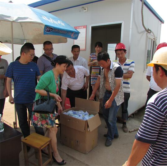 炎炎夏日,酷暑難耐。6月12日下午,我院工會主席蔡春香一行將一份份清涼、一份份關懷送到了我院異地新建工程項目的工人身邊。