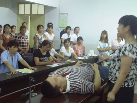 衡山縣新橋鎮(zhèn)衛(wèi)生院臨近婁底,現(xiàn)有72張床位,在職職工76人,其骨科、國醫(yī)館具有一定規(guī)模。因地理位置較偏僻,所以醫(yī)療條件和技術(shù)也十分有限。我院醫(yī)務(wù)部部長柏太柱,護(hù)士長許敏一到該院便下到病房指導(dǎo)醫(yī)護(hù)查房,柏太柱精心準(zhǔn)備了最新理念的《急救醫(yī)學(xué)指南解讀》講課資料,許敏則示范了如何在緊急情況下進(jìn)行科學(xué)、規(guī)范的實際操作。講課內(nèi)容簡明扼要,深入淺出,使基層醫(yī)務(wù)人員受益匪淺。