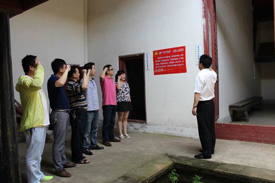 義診結(jié)束后,大家又轉(zhuǎn)道衡山縣白果村參觀了黨的紅色教育基地——岳北農(nóng)工會舊址。從展覽中得知,1923年這里成為中國革命史上全國第三個、湖南第一個農(nóng)會組織,以及毛澤東同志1926年考察農(nóng)民運動時白果婦女鬧祠堂、求解放的事跡。在這里,副院長黃志堅帶領(lǐng)大家舉行了重溫黨的誓詞活動。