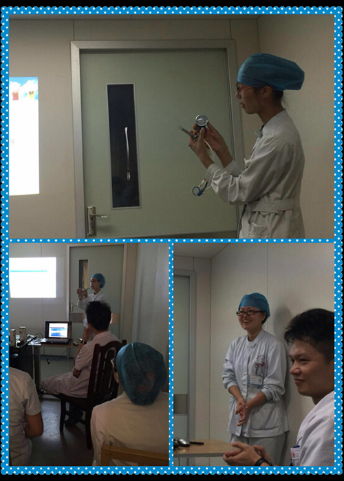 接下來的PPT演講中,每位圈員分別演示了各自負(fù)責(zé)的相關(guān)有效措施以及后期預(yù)想,展示了已經(jīng)使用在臨床應(yīng)用當(dāng)中的各項(xiàng)措施和自主發(fā)明創(chuàng)造的幾項(xiàng)輔助器械儀器,充分體現(xiàn)了品管圈成立中各位圈員的自主自發(fā)精神,集思廣益,思維碰撞,儼然一場(chǎng)特別的頭腦風(fēng)暴。