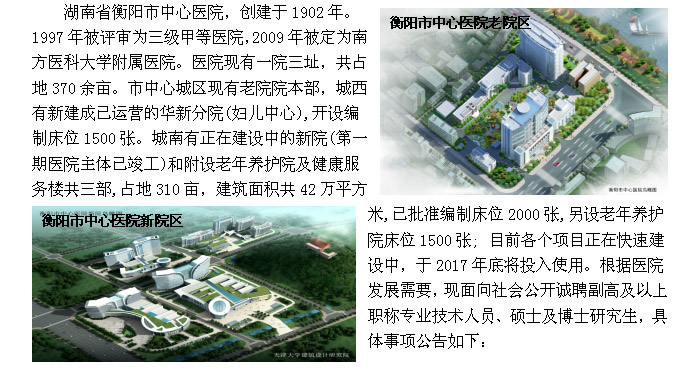 衡陽市中心醫(yī)院2016年度人才引進招聘公告