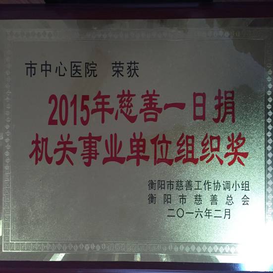 我院榮獲“慈善一日捐”機(jī)關(guān)事業(yè)單位組織獎(jiǎng) 發(fā)布時(shí)間:2016年3月7日 預(yù)覽:3651次 2016年3月3日晚上,第三屆“衡陽(yáng)慈善獎(jiǎng)”暨2015年“慈善一日捐”總結(jié)大會(huì)上,衡陽(yáng)市中心醫(yī)院被授予第三屆“衡陽(yáng)慈善一日捐”機(jī)關(guān)事業(yè)單位組織獎(jiǎng)。 作為慈善事業(yè)的貢獻(xiàn)者,我院始終秉持“仁心仁術(shù)、濟(jì)世濟(jì)民”的醫(yī)院精神,近九年累計(jì)捐達(dá)50多萬(wàn)元,捐贈(zèng)領(lǐng)域遍及文教、敬老、扶貧等多個(gè)領(lǐng)域?;仡櫸以旱拇壬茪v程,2008年冰災(zāi)和汶川地震,2009年臺(tái)灣遇災(zāi),2010年青海玉樹地震,2013年四川雅安蘆山地震,2015年《心得樂》“窮娃盼過(guò)年”活動(dòng),積極組織全院職工為各地災(zāi)區(qū)人民愛心捐款共達(dá)50多萬(wàn)元。 一路走來(lái),衡陽(yáng)市中心醫(yī)院慈善成果已是斐然。未來(lái)“責(zé)任為先”的衡陽(yáng)市中心醫(yī)院仍將“鐵肩擔(dān)道義”,讓我們同心同德,同舟共濟(jì),開拓創(chuàng)新,奮勇爭(zhēng)先,用“妙手”筑就中華慈善事業(yè)及為推動(dòng)健康衡陽(yáng)建設(shè)的嶄新篇章! (王恩萍)