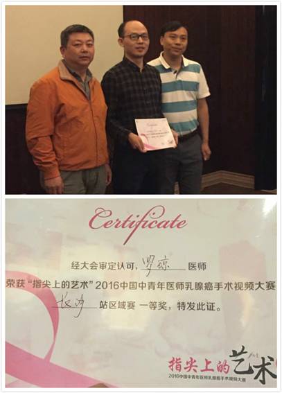 乳甲外科傳來喜訊 發(fā)布時間:2016年5月9日 預(yù)覽:2259次 我院乳甲外科羅瓊醫(yī)生在近日舉辦的“指尖上的藝術(shù)”2016中國中青年醫(yī)師乳腺癌手術(shù)視頻大賽——湖南省長沙站區(qū)域賽上榮獲一等獎。本次大賽參賽醫(yī)院涵蓋了湘雅附一、湘雅附二、湖南省腫瘤醫(yī)院、郴州市第一人民院等省內(nèi)多家知名醫(yī)院。 (李小敏)