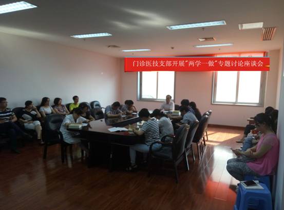 門診醫(yī)技支部召開“兩學(xué)一做” 發(fā)布時間:2016年6月2日 預(yù)覽:12686次 第一專題學(xué)習(xí)討論會 按照醫(yī)院開展“兩學(xué)一做”學(xué)習(xí)教育實(shí)施方案的要求,6月1日下午,門診醫(yī)技黨支部在門診綜合大樓6樓會議室召開了第一專題學(xué)習(xí)會。學(xué)習(xí)采取個人自學(xué)和集中研討相結(jié)合的方式進(jìn)行。支部書記張永明首先組織學(xué)習(xí)了黨章黨規(guī),聯(lián)點(diǎn)領(lǐng)導(dǎo)鄒建軍以普通黨員身份參加所在支部的組織生活,并作了指導(dǎo)性和建設(shè)性發(fā)言,使大家受益匪淺。隨后,大家圍繞“講政治、有信念“專題大家進(jìn)行了認(rèn)真討論,會后還下發(fā)了《習(xí)近平總書記系列重要講話讀本》,同時對下一步工作進(jìn)行了安排部署。 (張永明)