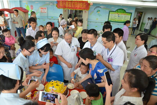 我們陪你一起成長 發(fā)布時(shí)間:2016年6月4日 預(yù)覽:2180次 六月,是童年的搖籃。六月,是童年的太陽。六月,是一支幸福的歌。踏著六月的腳步,披著六月的陽光,我們迎來了2016年“六一”兒童節(jié)。衡陽市中心醫(yī)院兒科在這天,組織了豐富多彩的活動,陪孩子們一起過節(jié)。 兒科醫(yī)護(hù)人員精心準(zhǔn)備的舞蹈節(jié)目《大王叫我來巡山》首先拉開了活動帷幕,活潑調(diào)皮的舞蹈給平時(shí)嚴(yán)肅認(rèn)真的醫(yī)生哥哥,護(hù)士姐姐增添了更多的親和力,吸引了很多的小朋友加入節(jié)目中。接下來是分享老虎蛋糕。被邀請切蛋糕的小朋友羅小帥,在張黎黎主任耐心的鼓勵和幫助下,切下了第一刀,所有的小朋友翹首以待。已經(jīng)吃到蛋糕的小朋友迫不及待,吃的滿臉都是奶油;還沒吃到蛋糕的小朋友急得直哭,場面甚是熱鬧。最后是猜謎語贏禮物活動。50多份禮物瞬間吸引了小朋友們的眼球。禮物品種繁多,琳瑯滿目:有小書本,積木,畫板,機(jī)器人,球,小動物玩偶等等。家長們抱著小朋友們積極參與猜謎語,有的小朋友拿到了彩色足球,想一想又去換了變形金剛?;顒影殡S著小朋友的歡聲笑語畫上了圓滿的句號。 在兒科住院的孩子軒軒興奮地說:“今天是六一兒童節(jié),本來如果我不生病,就可以跟同學(xué)們一起玩了,可是我生病了,身體不舒服,謝謝醫(yī)生護(hù)士哥哥姐姐給我送來了禮物,我很開心?!蹦饶鹊膵寢屨f:“我感到很意外,沒想到醫(yī)院會給孩子準(zhǔn)備了禮物,特別用心,很感謝兒科,孩子很快樂。醫(yī)院舉辦這樣的活動特別有意義。” 在這美好的節(jié)日里,孩子們用智慧和熱情播撒了希望的種子,用夢幻與彩虹編織了一個無悔的童年。我相信此時(shí)此刻孩子們是快樂的,幸福的。愿每個孩子都有一個健康愉快的童年。我們陪你一起成長! (劉丹)