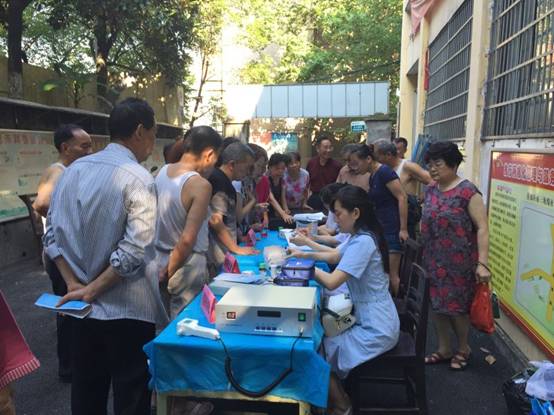 我院內(nèi)分泌科深入社區(qū)開(kāi)展義診活動(dòng) 發(fā)布時(shí)間:2016年6月29日 預(yù)覽:2354次 2016年6月22日上午,我院內(nèi)分泌科與衡陽(yáng)市氮肥廠職工醫(yī)院專家一道,深入社區(qū)開(kāi)展糖尿病免費(fèi)篩查活動(dòng)。 義診現(xiàn)場(chǎng),各位醫(yī)療專家免費(fèi)為社區(qū)居民進(jìn)行了測(cè)量血壓、檢測(cè)血糖、糖化血紅蛋白、糖耐量實(shí)驗(yàn)和糖尿病足病的篩查。此次活動(dòng)共免費(fèi)篩查80余人,其中篩查出高危人群46人、糖尿病人18人、血糖控制不佳的14人,發(fā)放宣傳資料100余份。 目前,糖尿病作為繼心腦血管疾病、惡性腫瘤后的第三大威脅人類健康的慢性非傳染性疾病,已成為全球關(guān)注的重點(diǎn)公共衛(wèi)生問(wèn)題。此次活動(dòng)旨在通過(guò)篩查和教育,引起糖尿病高危人群對(duì)糖尿病的關(guān)注,指導(dǎo)糖尿病患者合理就醫(yī)、規(guī)范治療,提高糖尿病的診斷率和治療達(dá)標(biāo)率,減緩并發(fā)癥發(fā)生,降低致殘率和病死率。 (劉丹)