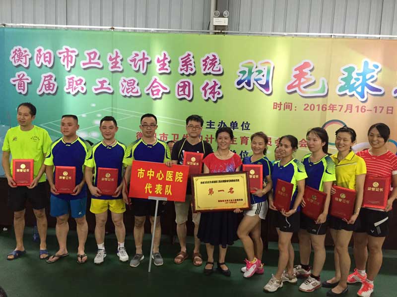 我院獲得市衛(wèi)計(jì)系統(tǒng)羽毛球賽團(tuán)體第一名 發(fā)布時(shí)間:2016年7月19日 預(yù)覽:2276次 2016年7月16日至17日,衡陽(yáng)市衛(wèi)生計(jì)生系統(tǒng)職工混合團(tuán)體羽毛球賽在衡陽(yáng)市健友羽毛球館隆重舉行,來(lái)自七縣五區(qū)的全市衛(wèi)生計(jì)生系統(tǒng)21支代表隊(duì)200余名運(yùn)動(dòng)員參加了混合團(tuán)體、男子單打的比賽。 為確保我院代表隊(duì)在此次比賽中取得好成績(jī),院黨委、工會(huì)對(duì)本次比賽組織工作非常重視,黨委書(shū)記申惠龍、副院長(zhǎng)劉小平積極參加隊(duì)員訓(xùn)練,工會(huì)主席蔡春香積極組隊(duì)并為隊(duì)員鼓勁。全體參賽隊(duì)員利用周日、晚上及休息時(shí)間參加訓(xùn)練,他們不怕苦、不怕累,刻苦訓(xùn)練;在比賽中,英勇頑強(qiáng)、敢于拼搏、團(tuán)結(jié)協(xié)作,參賽隊(duì)員過(guò)硬的體能、高超的球藝,展現(xiàn)了衡陽(yáng)市中心醫(yī)院良好的精神風(fēng)貌。必勝的信念激發(fā)出昂揚(yáng)的斗志,辛勤的汗水澆灌出驕人的成績(jī)。經(jīng)過(guò)二天的激烈角逐,我院代表隊(duì)獲得了衡陽(yáng)市衛(wèi)生計(jì)生系統(tǒng)職工混合團(tuán)體羽毛球賽團(tuán)體第一名,醫(yī)保辦劉偉榮獲男子單打第三名的好成績(jī)。