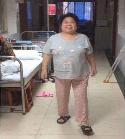 膝關(guān)節(jié)骨性關(guān)節(jié)炎患者的福音 發(fā)布時間:2016年8月5日 預(yù)覽:2366次 隨著我國老齡化問題的加劇,膝關(guān)節(jié)炎患者越來越多,他們之中有很多人,因為膝關(guān)節(jié)病變長期忍受著病痛的折磨。我院骨科二區(qū)關(guān)節(jié)外科唐雄主任認(rèn)為,患有膝關(guān)節(jié)炎的病友們應(yīng)當(dāng)選擇及時到醫(yī)院就診,盡早解除痛苦,提高生活質(zhì)量。 2015年10月,我院骨科二區(qū)迎來了62歲的李姓患者,她是一名類風(fēng)濕性關(guān)節(jié)炎的患者,病程10年。10年前,她被查出患有嚴(yán)重的類風(fēng)濕性關(guān)節(jié)炎,全身多處小關(guān)節(jié)疼痛,自那以后,患者就長期依靠激素來控制病情。2年前,患者雙側(cè)膝關(guān)節(jié)開始出現(xiàn)疼痛、腫脹,起初還能下地走200米左右,后來走50米都感覺費力,雙下肢膝關(guān)節(jié)出現(xiàn)變形,靠鎮(zhèn)痛藥物才能入睡。起初患者認(rèn)為,類風(fēng)濕關(guān)節(jié)炎是自己的老病,沒得治,拒絕來醫(yī)院就診。最后,實在痛苦難忍,遂在家人的陪伴下來到我院骨科二區(qū)就診。 來院后,骨科二區(qū)唐雄主任、廖浩主治醫(yī)師熱情接待了她。經(jīng)查,患者為嚴(yán)重的類風(fēng)濕性關(guān)節(jié)炎導(dǎo)致的雙膝關(guān)節(jié)破壞,雙膝關(guān)節(jié)內(nèi)翻畸形并嚴(yán)重的骨質(zhì)缺損,同時由于患者長期服用激素類藥物,其全身骨質(zhì)均有嚴(yán)重的骨質(zhì)疏松。患者得知病情嚴(yán)重性后,感到失望、沮喪,唐雄主任信心滿滿地安慰道,“您這種情況行膝關(guān)節(jié)置換術(shù),就能徹底解決關(guān)節(jié)疼痛和雙膝關(guān)節(jié)不能活動的問題?!庇谑?,病人又重新燃起了對生活的希望,并要求盡快進(jìn)行手術(shù)治療。 考慮到患者為長期慢性病病人,唐雄主任決定先給患者疼痛程度更高的右側(cè)膝關(guān)節(jié)進(jìn)行手術(shù)治療。經(jīng)過完善備血、調(diào)整激素用量等術(shù)前準(zhǔn)備后,2015年10月10日,唐主任為患者進(jìn)行了右側(cè)膝關(guān)節(jié)人工關(guān)節(jié)置換術(shù),術(shù)后患者恢復(fù)良好。右側(cè)膝關(guān)節(jié)疼痛解除,術(shù)后3天右下肢能下地活動。出院后,患者對右側(cè)膝關(guān)節(jié)置換術(shù)的效果非常滿意。 2016年7月17日,唐主任為該患者再次進(jìn)行了左膝關(guān)節(jié)人工關(guān)節(jié)置換術(shù)?;颊咝g(shù)后3天就能下地活動?,F(xiàn)在她的臉上又出現(xiàn)了燦爛的笑容,她逢人就說,要是早一點來手術(shù)治療,就能早一點擺脫病痛的折磨了。 人工髖、膝關(guān)節(jié)置換術(shù)是自上個世紀(jì)以來在醫(yī)學(xué)中最成功的手術(shù)之一,目前,對于各種終末期關(guān)節(jié)病治療,人工髖、膝關(guān)節(jié)置換術(shù)取得了革命性的成功。我院骨科二區(qū)關(guān)節(jié)外科自上世紀(jì)80年代開始就開展了人工關(guān)節(jié)置換術(shù),積累了豐富的經(jīng)驗與技術(shù),此項手術(shù)技術(shù)成熟,病人愈后好,能徹底解決因長期膝關(guān)節(jié)帶來的痛苦,大大提高了病人的生活質(zhì)量。 擁有好的關(guān)節(jié),健步你的人生——這是我們關(guān)節(jié)外科全體醫(yī)務(wù)人員共同奮斗的目標(biāo)。 (骨科二區(qū) 廖浩)