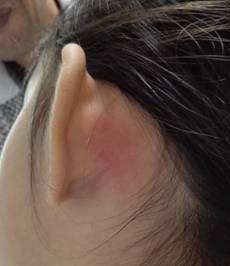 1.術(shù)前耳后紅腫 2.術(shù)前CT1