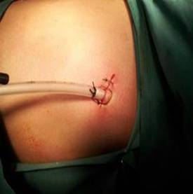 微創(chuàng)胸腔鏡手術最初采取了輔助開胸切口下、胸腔鏡照明的方式,也就是胸部開個大口子,胸腔鏡頭伸進胸腔內觀察,這都是最初的技術水平有限所導致的;之后過渡到了胸部打三個洞(三孔)下操作的經典模式。隨著手術技巧的進一步提高及經驗的不斷豐富,逐漸過渡到了單操作孔(兩孔)及單孔(唯一孔)下的操作。也就是說,微創(chuàng)胸腔鏡手術的發(fā)展已經相當成熟,目前只需要一個2-3厘米的胸部小切口就可以完成以前25-30厘米切口下才能完成的手術。