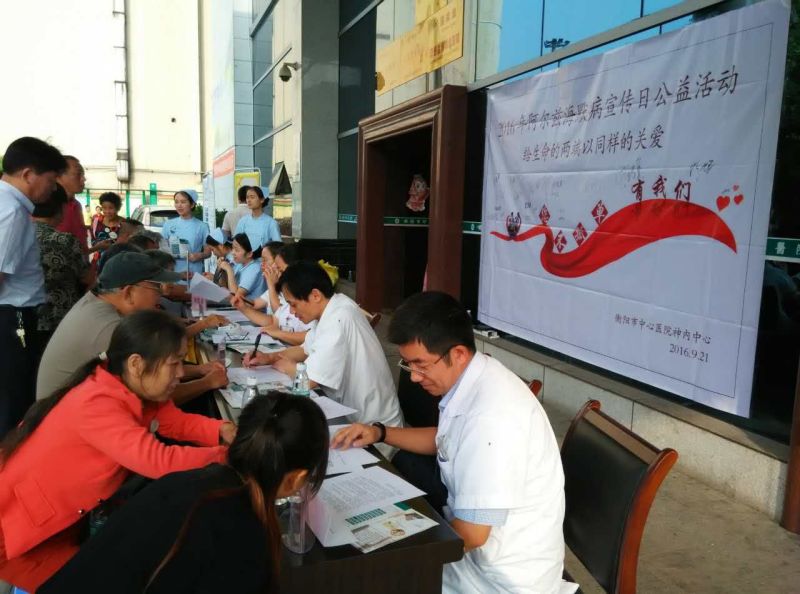 在9月21日第二十二個(gè)”世界阿爾茨海默病日”的這一天,衡陽(yáng)市中心醫(yī)院神經(jīng)內(nèi)科主辦了以”給生命的兩端以同等的關(guān)愛(ài)”為主題的大型義診宣教活動(dòng)。早上8:00-11:00我們?cè)陂T(mén)診大廳設(shè)立義診臺(tái)為200多位前來(lái)咨詢(xún)的病友熱情地解答了他們心中對(duì)于疾病的困惑和憂(yōu)慮,使用專(zhuān)業(yè)量表對(duì)有記憶下降的病友進(jìn)行了癡呆篩查,并免費(fèi)測(cè)量了血壓和血糖、發(fā)放健康教育資料。下午3:00-4:00我們?cè)谏駜?nèi)中心示教室為近40位病友舉辦了“阿爾茨海默病健康講堂”,在會(huì)上通過(guò)PPT的形式,結(jié)合具體實(shí)例,深入淺出向病友們講解了什么是老年癡呆,它的臨床癥狀和危害有哪些,治療上有些什么辦法,護(hù)理上應(yīng)注意的主要問(wèn)題等,重點(diǎn)強(qiáng)調(diào)了“早預(yù)防、早發(fā)現(xiàn)、早診斷、早治療”的原則。