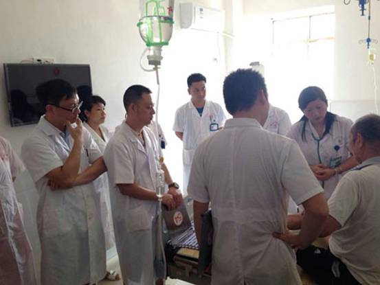 與基層手牽手 與百姓心連心 發(fā)布時(shí)間:2016年9月28日 預(yù)覽:2357次 金秋九月,秋高氣爽。值第17個(gè)世界心臟病日到來之際,為了喚起公眾對心腦血管疾病的重視,9月26日,華新內(nèi)一科在徐睫主任的帶領(lǐng)下一大早便來到了衡南縣第五人民醫(yī)院開展義診活動(dòng)。 聽說有市里大醫(yī)院的專家來義診,前來看病、咨詢的老百姓絡(luò)繹不絕,場面熱鬧非凡。徐主任、謝醫(yī)生、全醫(yī)生非常耐心細(xì)致地一一給予解答、看病、開方。徐主任還到住院部給病人查房,抽取典型病例給該院醫(yī)生進(jìn)行了一次教學(xué)查房,并利用PPT給大家授課,詳細(xì)講解了冠心病的診斷、鑒別診斷、治療、用藥及最新進(jìn)展,并一一解答了他們提出的一些問題。該院醫(yī)生紛紛表示受益匪淺,并對徐睫主任的專業(yè)素養(yǎng)表示敬佩,義診活動(dòng)取得了圓滿成功。 此次活動(dòng)加強(qiáng)了跟鄉(xiāng)鎮(zhèn)醫(yī)院的交流聯(lián)絡(luò),做到了“傳幫帶教”,也讓當(dāng)?shù)乩习傩照嬲w會到衡陽市中心醫(yī)院是“老百姓心中的醫(yī)院”。華新內(nèi)一科、內(nèi)三科自合科以來,在徐睫主任和劉平主任的帶領(lǐng)下,全科人員齊心協(xié)力,毫不松懈,嚴(yán)抓醫(yī)療護(hù)理質(zhì)量,努力把科室做得更大、更專、更強(qiáng)!我們相信,我們的明天會更好! (李桂華)