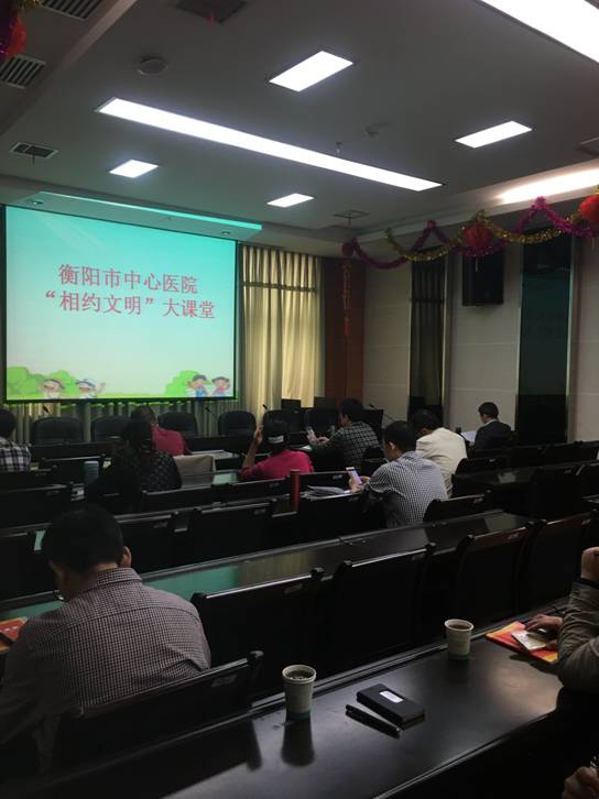 相約文明,開講啦 發(fā)布時(shí)間:2016年10月15日 預(yù)覽:2340次 為推進(jìn)文明創(chuàng)建工作的深入開展,2016年9月14日下午,衡陽(yáng)市中心醫(yī)院“相約文明”大課堂在醫(yī)院21樓多功能會(huì)議廳舉行。 “相約文明”學(xué)習(xí)活動(dòng),是在衡陽(yáng)市委、市政府領(lǐng)導(dǎo)下,市委宣傳部和市創(chuàng)建辦組織開展的一項(xiàng)全市性學(xué)習(xí)活動(dòng)。醫(yī)院創(chuàng)建辦擬定把家和萬(wàn)事興、我愛(ài)我院、遠(yuǎn)親不如近鄰、“痰”吐之間、“堵”在心頭、“讓”出文明、有“禮”走遍天下、舌尖上的文明、E網(wǎng)情深、生財(cái)有道等10項(xiàng)內(nèi)容,帶進(jìn)醫(yī)院“相約文明”大課堂,讓全院職工從多個(gè)維度中受教育、得啟發(fā)、促提高,早日實(shí)現(xiàn)衡陽(yáng)創(chuàng)建“全國(guó)文明城市”的目標(biāo)。 當(dāng)日開講的內(nèi)容是“文明服務(wù)、一起行動(dòng)”,通過(guò)視頻學(xué)習(xí)“醫(yī)務(wù)人員職業(yè)道德規(guī)范”及“醫(yī)院崗位文明用語(yǔ)”,給在場(chǎng)的學(xué)習(xí)者上重溫了一堂生動(dòng)的醫(yī)院“文明禮儀”課程。 (王恩萍)