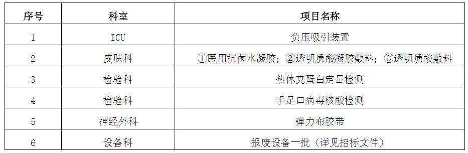 因醫(yī)院發(fā)展的需要,我院擬于近期對一批醫(yī)療耗材進行院內(nèi)招標采購以及處置一批報廢設(shè)備,歡迎具備條件的公司報名參加。