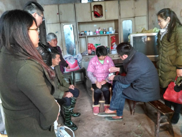 李院長來到結(jié)對幫扶對象謝秋菊家里,同她和她的父母促膝長談,詳細(xì)了解情況。謝秋菊今年51歲,有精神殘疾和智力殘疾,喪失勞動能力,丈夫去世,女兒在外打工,老家房子年久失修,不能居住,現(xiàn)在與70多歲的父母一同生活。李院長查看了她的身體健康狀況,仔細(xì)了解她的服藥情況。當(dāng)李院長看到她幾種藥混用時,囑咐她及她的父母要注意用藥安全,并詳細(xì)講解如何服藥,并認(rèn)真記下下次來時要給謝秋菊帶些治療胃潰瘍的藥品。臨別時,李院長給謝秋菊送上了慰問金,祝她春節(jié)快樂,并叮囑她和父母保重身體,我院一定會盡心盡力在經(jīng)濟上給予幫扶,醫(yī)療上給予救助。