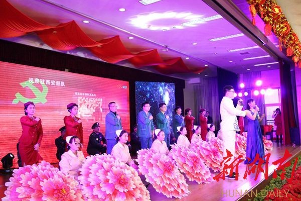 當(dāng)天下午2點30分,晚會在歡快喜慶的舞蹈《共圓中國夢》中拉開帷幕。舞蹈、音樂劇、詩朗誦、歌曲串燒、小品、音樂情景劇、表演唱等節(jié)目輪番上陣,精彩紛呈。歌舞《不忘初心》抒發(fā)了醫(yī)務(wù)工作者牢記使命、砥礪前行的豪情;歌舞《擼起袖子加油干》展示了衡陽市中心醫(yī)院邁進新時代、譜寫新篇章的信心和決心。最后,晚會在大合唱《歌唱祖國》中落下帷幕。