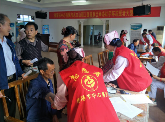 通訊員殷君發(fā)報(bào)道 4月21日,衡陽(yáng)市中心醫(yī)院與水口山職工醫(yī)院聯(lián)合舉辦紅手環(huán)志愿者大型義診活動(dòng)。為常寧市水口山鎮(zhèn)近200名居民提供義診、科普講座、健康宣教、疾病普查和專業(yè)咨詢服務(wù)。