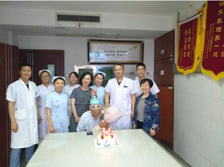 5月2日是汪老85歲的生日,這是他第一次在醫(yī)院過生日,譚曙光主任得知后立即和唐美容護士長商議,給汪爺爺準備了一個特別的生日會。并當即訂了蛋糕,準備鮮花,召集管床醫(yī)生及當班的醫(yī)務人員陪伴汪爺爺過生日,送上一份祝福,汪爺爺臉上洋溢著幸福的笑容。