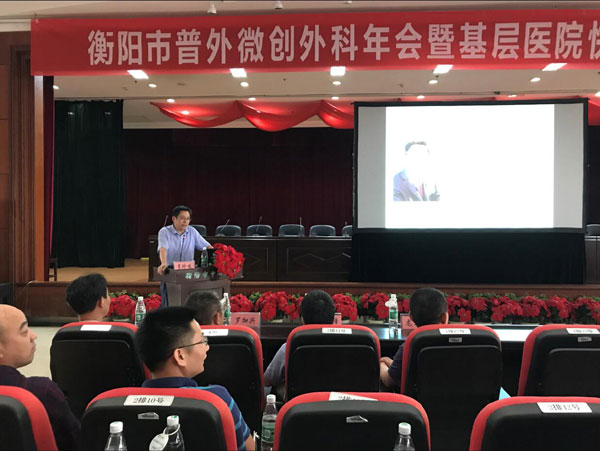 通訊員許敏報道:為促進普外微創(chuàng)技術(shù)發(fā)展及快速康復(fù)外科理念推廣,加強學習和交流,6月9日-6月10日由衡陽市醫(yī)學會主辦、衡陽市中心醫(yī)院承辦的“衡陽市普外微創(chuàng)外科年會暨基層醫(yī)院快速康復(fù)外科推廣會”在衡陽市中心醫(yī)院綜合樓21樓大會議室舉行。衡陽市衛(wèi)生計生委副主任、市醫(yī)學會會長胡曉明出席會議,市中心醫(yī)院黨委書記肖友儒發(fā)表了熱情洋溢的歡迎致辭,我院副院長、普外中心主任、衡陽市普外腹腔鏡微創(chuàng)外科學組主任委員李珍發(fā)博士擔任大會主席并致開幕詞,來自省內(nèi)知名的普外科大咖、麻醉科權(quán)威及護理專家、基層醫(yī)院同道300余人齊聚一堂,共襄盛舉。