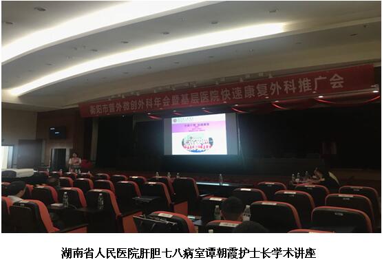 6月10日上午,大會邀請了省內(nèi)知名專家進行專題講座,省人民醫(yī)院肝膽醫(yī)院院長蔣波教授就“快速康復(fù)認識與實踐”做了專題報告;湘雅附二醫(yī)院副院長徐軍美教授從麻醉角度就“麻醉在快速康復(fù)中的作用”做了深入淺出的講解,省人民醫(yī)院微創(chuàng)外科主任尹新民教授報告了“解剖性肝切除技巧”,省人民醫(yī)院肝膽七八病室護士長譚朝霞也就“全面干預(yù),加速康復(fù)”做了精彩的演講。