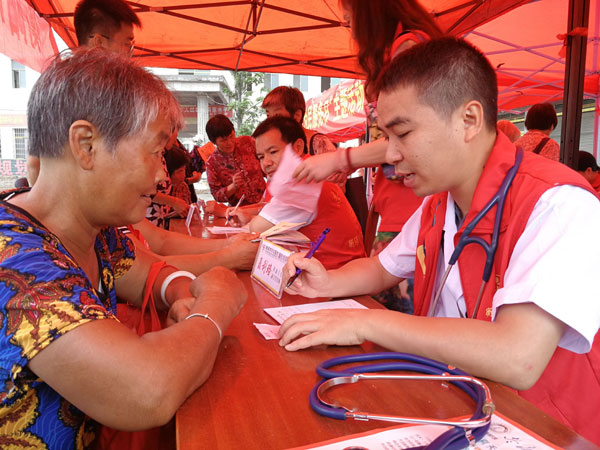我院聯(lián)合淝田鎮(zhèn)舉行大型義診活動 發(fā)布時間:2018年6月21日 預覽:2221次 2018年6月21日,為改善耒陽市淝田鎮(zhèn)村民尤其是因病致貧、因病返貧老百姓的健康狀況,我院聯(lián)合耒陽市淝田鎮(zhèn)黨委、人大、衛(wèi)生院開展健康扶貧大型義診公益活動。 在淝田鎮(zhèn)鎮(zhèn)政府大樓前廣場,我院副院長鄒建軍帶領心血管內(nèi)科、神經(jīng)內(nèi)科、呼吸內(nèi)科、骨科、耳鼻咽喉科等經(jīng)驗豐富的醫(yī)療專家現(xiàn)場問診、仔細檢查、健康宣教、開具處方。據(jù)統(tǒng)計,活動現(xiàn)場我院免費看病近200名老百姓,還免費發(fā)放了價值3000多元的藥品。淝田鎮(zhèn)衛(wèi)生院也免費為老百姓量血壓、測血脂和血糖等。 為籌備這次大型義診公益活動,我院駐村扶貧工作隊前期對淝田鎮(zhèn)百姓疾病譜做了大量調(diào)研工作,統(tǒng)計分析得知當?shù)馗哐獕?、腦血管病等慢性病人較多,將相關情況向醫(yī)院匯報后,院領導針對性地派出對應??漆t(yī)生對癥診斷和治療,提前通知淝田鎮(zhèn)老百姓來免費咨詢和看病,得到了當?shù)匕傩盏臒崃覛g迎。看完病后,70多歲的貧困戶蔣菊英奶奶激動地說:“沒想到大醫(yī)院的專家會來我們這里給我們免費看病,還發(fā)藥,真是太感謝你們啦”。 (郭偉)