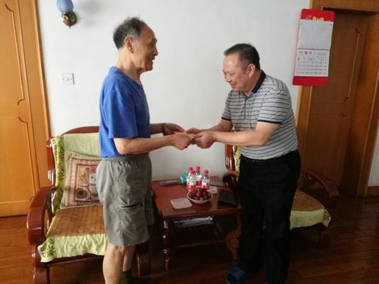 我院開展“七一”走訪慰問活動(dòng) 發(fā)布時(shí)間:2018年7月3日 預(yù)覽:2380次 通訊員唐冠群報(bào)道:“七一”前夕,衡陽市中心醫(yī)院黨委組織開展走訪慰問活動(dòng)。院領(lǐng)導(dǎo)帶領(lǐng)相關(guān)支部負(fù)責(zé)人深入老黨員、老干部、省勞模、困難黨員的家中,詳細(xì)詢問他們的生活和身體情況,送上慰問金和節(jié)日的問候,囑托他們保重身體,醫(yī)院將時(shí)刻關(guān)注大家,并竭盡所能為大家排憂解難。院領(lǐng)導(dǎo)們對(duì)他們?yōu)獒t(yī)院的奉獻(xiàn)與付出表示衷心的感謝,并殷切希望各位老黨員、老領(lǐng)導(dǎo)、老專家繼續(xù)關(guān)心關(guān)注醫(yī)院發(fā)展,為醫(yī)院更加美好的明天建言獻(xiàn)策、奉獻(xiàn)智慧!