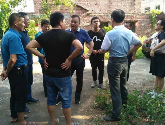 申惠龍院長(左五)一行與當?shù)劓?zhèn)、村干部商討集體經(jīng)濟事宜