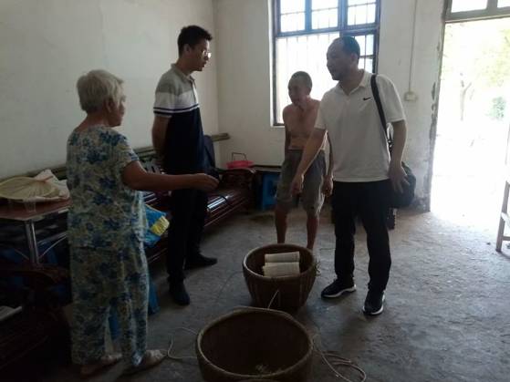 2名院領(lǐng)導(dǎo)走訪慰問結(jié)對幫扶困難群眾 發(fā)布時間:2018年8月9日 預(yù)覽:2745次 通訊員郭偉報道:2018年8月8日,衡陽市中心醫(yī)院副院長李珍發(fā)、蔣崢嶸一行到耒陽市淝田鎮(zhèn)肥美村走訪慰問結(jié)對幫扶困難群眾。 在肥美村,李珍發(fā)、蔣崢嶸聽取了醫(yī)院駐村工作隊的扶貧工作開展情況匯報,實地查看了村里的集體經(jīng)濟(jì)項目,走訪慰問貧困戶段茂順、謝秋菊、蔣嚴(yán)彪家,現(xiàn)場查看了他們的生產(chǎn)生活情況。在段茂順家,李珍發(fā)詳細(xì)了解段茂順的生活情況,得知段茂順身體還好,當(dāng)看到段茂順今年收獲了十幾袋油菜籽、半籮筐綠豆、十多個冬瓜,李珍發(fā)很是高興,鼓勵他多種植,多發(fā)展庭院經(jīng)濟(jì),并馬上聯(lián)系本單位食堂,把他的所有綠豆、冬瓜購買。承諾他油菜籽榨好油,會幫助他銷售。據(jù)了解,李珍發(fā)和駐村工作隊今年給段茂順申請到了危房改造項目,目前房屋地基已建好,段茂順每年有1900多元的養(yǎng)老金和計生獎勵,其和兒子的醫(yī)保由政府代繳,其兒子在廣東打工,日子在逐漸改善。 李珍發(fā)又來到謝秋菊家,同她家人親切交談,得知謝秋菊擔(dān)心他父親因腋窩下長了一個東西,很緊張。作為外科學(xué)博士、主任醫(yī)師,李珍發(fā)仔細(xì)查看患者腋下長的一個瘤子,微笑著安撫患者:“老人家,不要緊,這是個良性的皮下脂肪瘤,你只需做個小手術(shù),就沒事了。先觀察也可以,這個月你可以到我院去免費體檢。”患者緊張的神情一下子輕松了,連忙感謝李珍發(fā)博士。當(dāng)李珍發(fā)了解到謝秋菊父親家還養(yǎng)了一百多只鴨,有個女婿在做電商時,鼓勵他們大力發(fā)展家庭養(yǎng)殖業(yè),銷路不要擔(dān)心,網(wǎng)店、醫(yī)院都會幫助銷售的。 在蔣嚴(yán)彪家,蔣崢嶸和蔣嚴(yán)彪爺爺奶奶親切交談,得知蔣嚴(yán)彪暑假時去了江西他媽媽打工的地方。據(jù)了解,蔣嚴(yán)彪父親因病去世,母親長期在江西定居打工,蔣嚴(yán)彪缺乏父母關(guān)愛,有厭學(xué)傾向。蔣崢嶸叮囑其親人和駐村工作隊要多關(guān)心蔣嚴(yán)彪的學(xué)習(xí)和教育,并查看家里的雞鴨、魚塘、棗樹、手工加工業(yè)情況。當(dāng)他看到蔣嚴(yán)彪的爺爺在用機(jī)器加工面條,立即購買了52斤面條,購買了許多紅棗,告訴兩位老人可以去衡陽市中心醫(yī)院免費體檢,老人家很是高興。(衡陽市中心醫(yī)院 郭偉) 副院長李珍發(fā)博士和貧困戶親切交談 副院長李珍發(fā)博士給貧困群眾看病 副院長蔣崢嶸(右一)了解貧困群眾家庭手工業(yè)情況 副院長蔣崢嶸購買貧困戶面條和紅棗