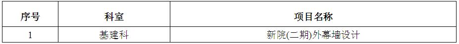 因醫(yī)院發(fā)展的需要,我院擬于近期對新院(二期)外幕墻設(shè)計(jì)進(jìn)行院內(nèi)招標(biāo)采購,歡迎具備條件的公司報(bào)名參加。
