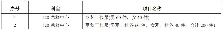 因醫(yī)院發(fā)展的需要,我院擬于近期對120急救中心工作服進(jìn)行院內(nèi)招標(biāo)采購,歡迎具備條件的公司報(bào)名參加。
