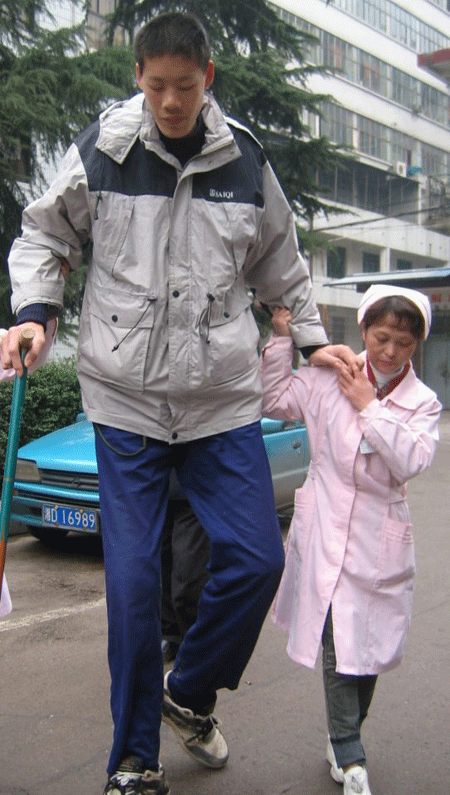市中心醫(yī)院堅(jiān)持以“老百姓自己的醫(yī)院”為辦院宗旨,減輕病人負(fù)擔(dān),關(guān)愛弱勢群體,深得社會(huì)滿意。這是醫(yī)院免費(fèi)救援身高2.31米的耒陽巨人劉軍。