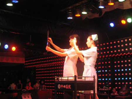 市中心醫(yī)院著力營造尊重病人,照顧病人,體貼病人的人性化服務(wù)氛圍,強(qiáng)調(diào)醫(yī)護(hù)人員與病人溝通的藝術(shù)化和親和力。醫(yī)護(hù)人員在進(jìn)行禮儀培訓(xùn)。